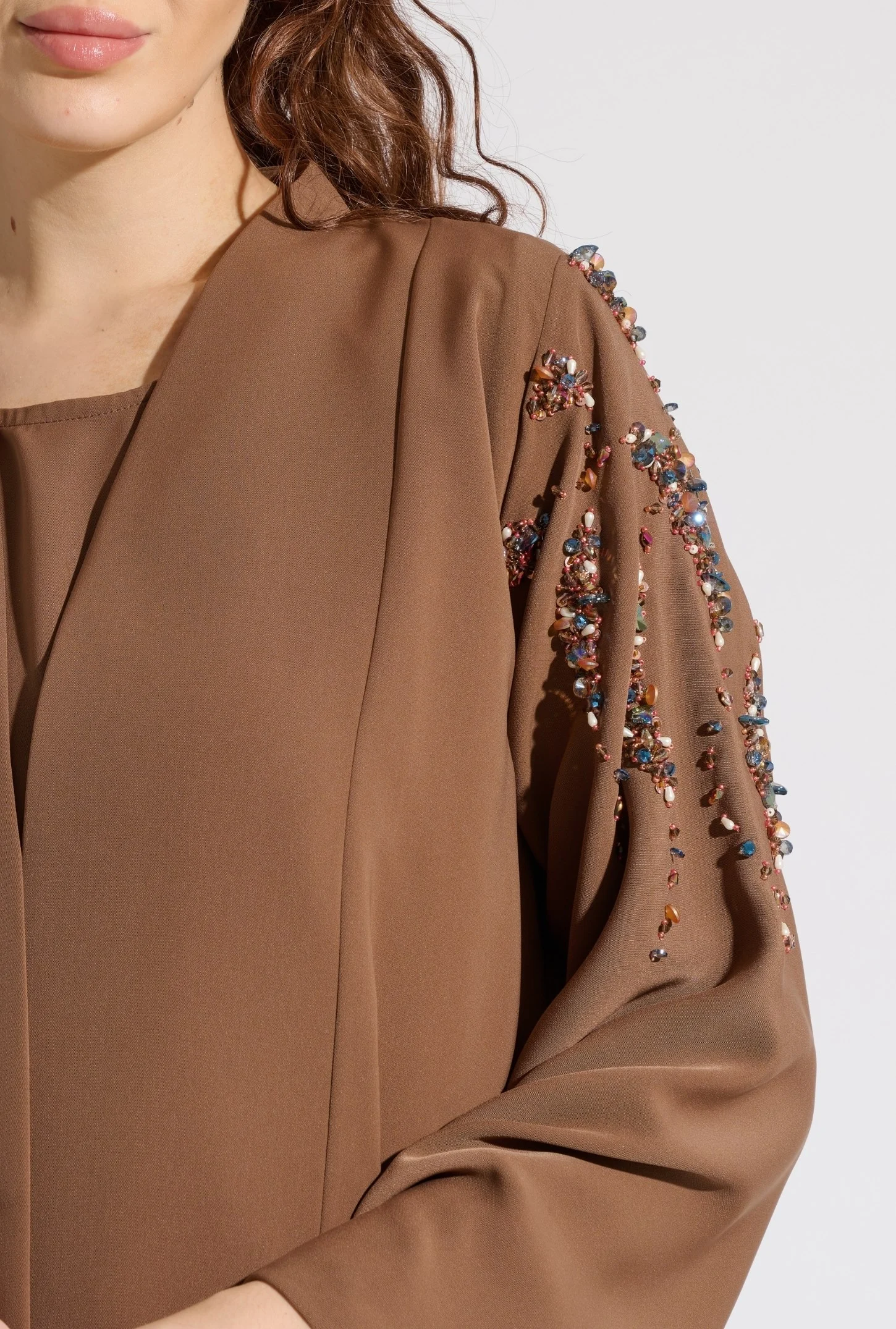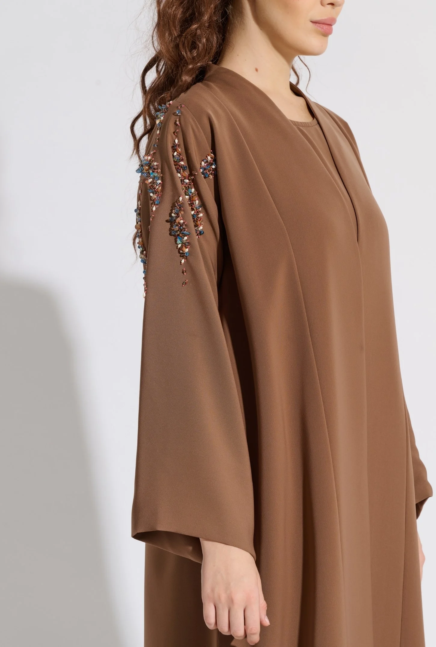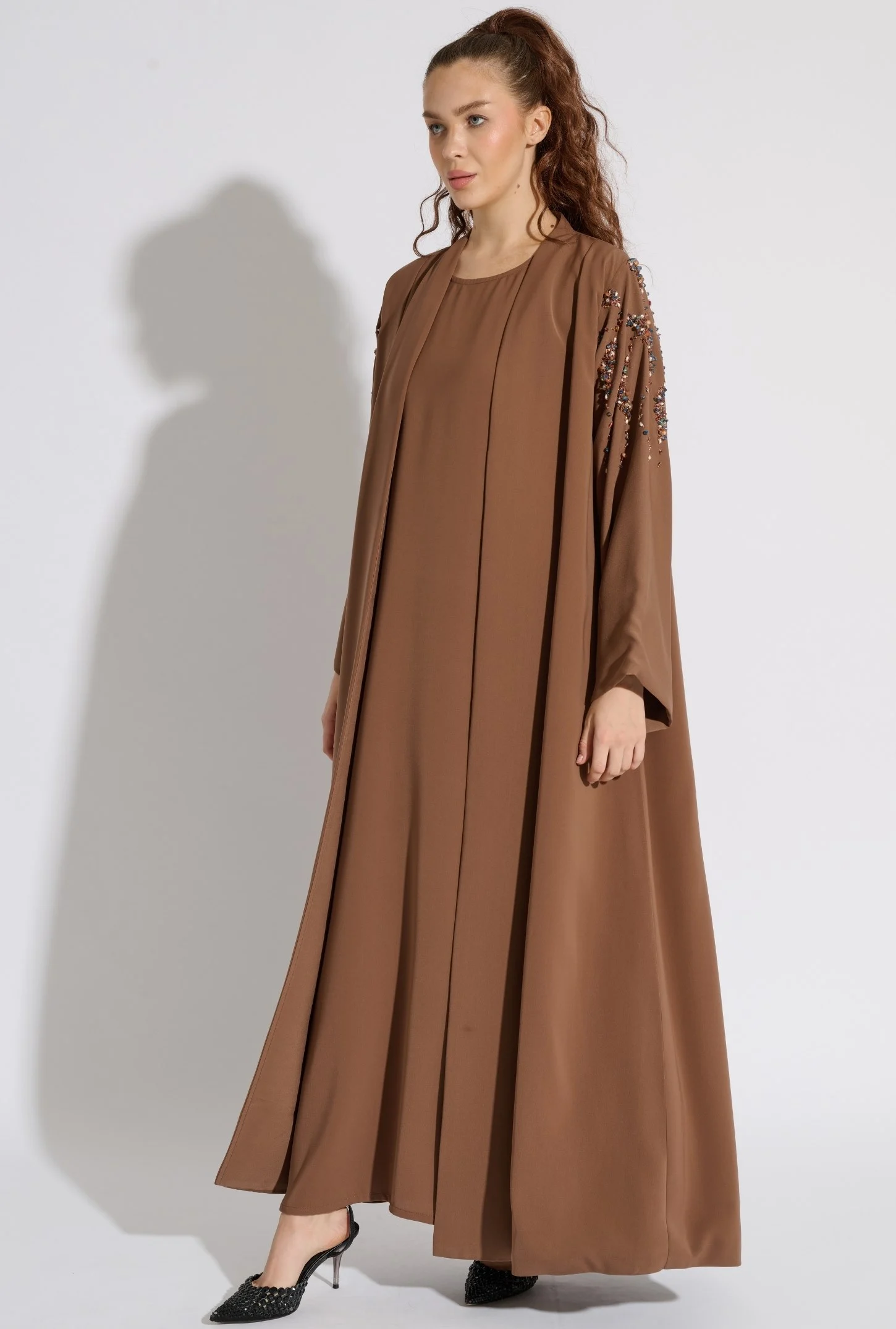 Abayas with luxurious handwork on the front side or sleeves, with inner dress and Headscarf.