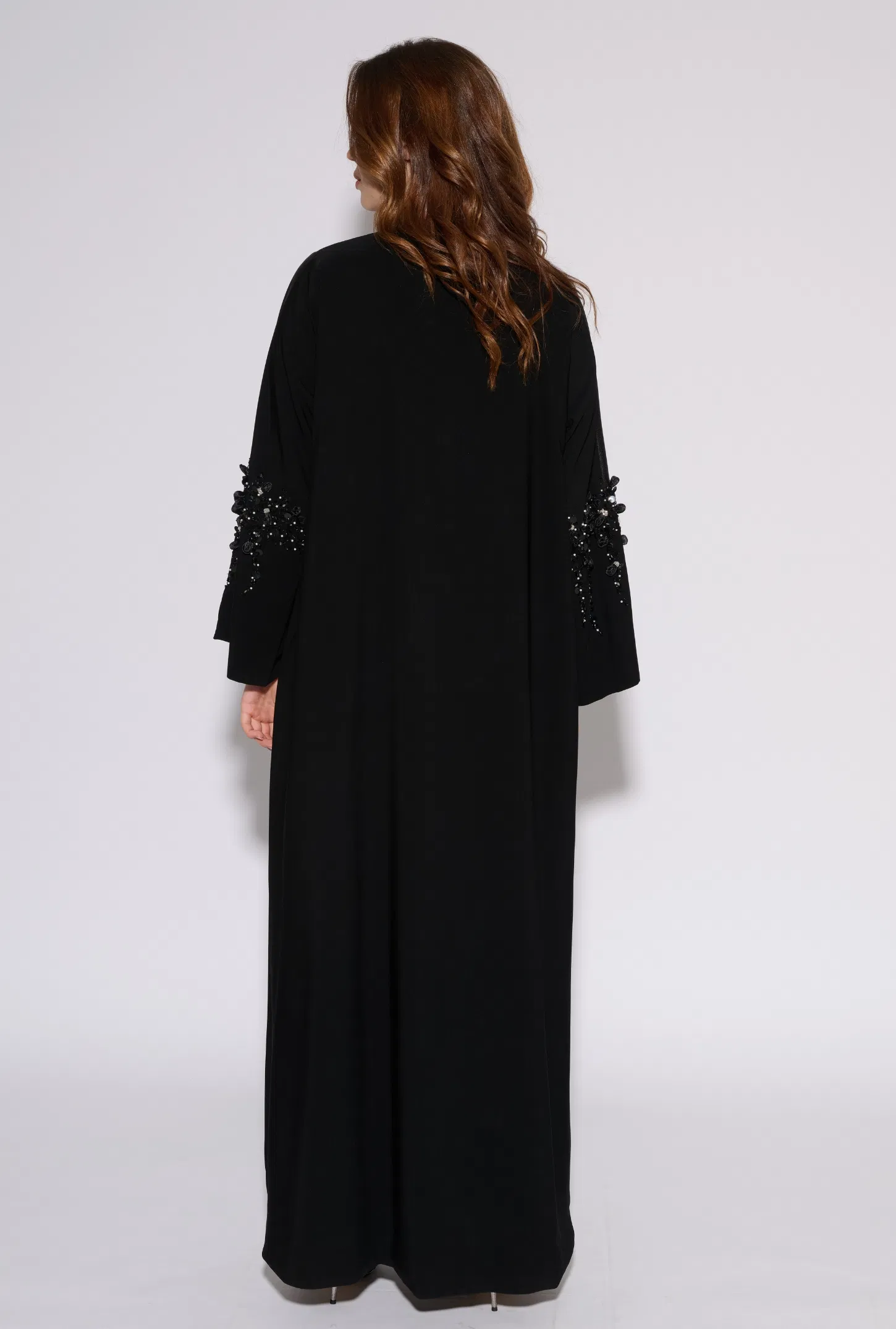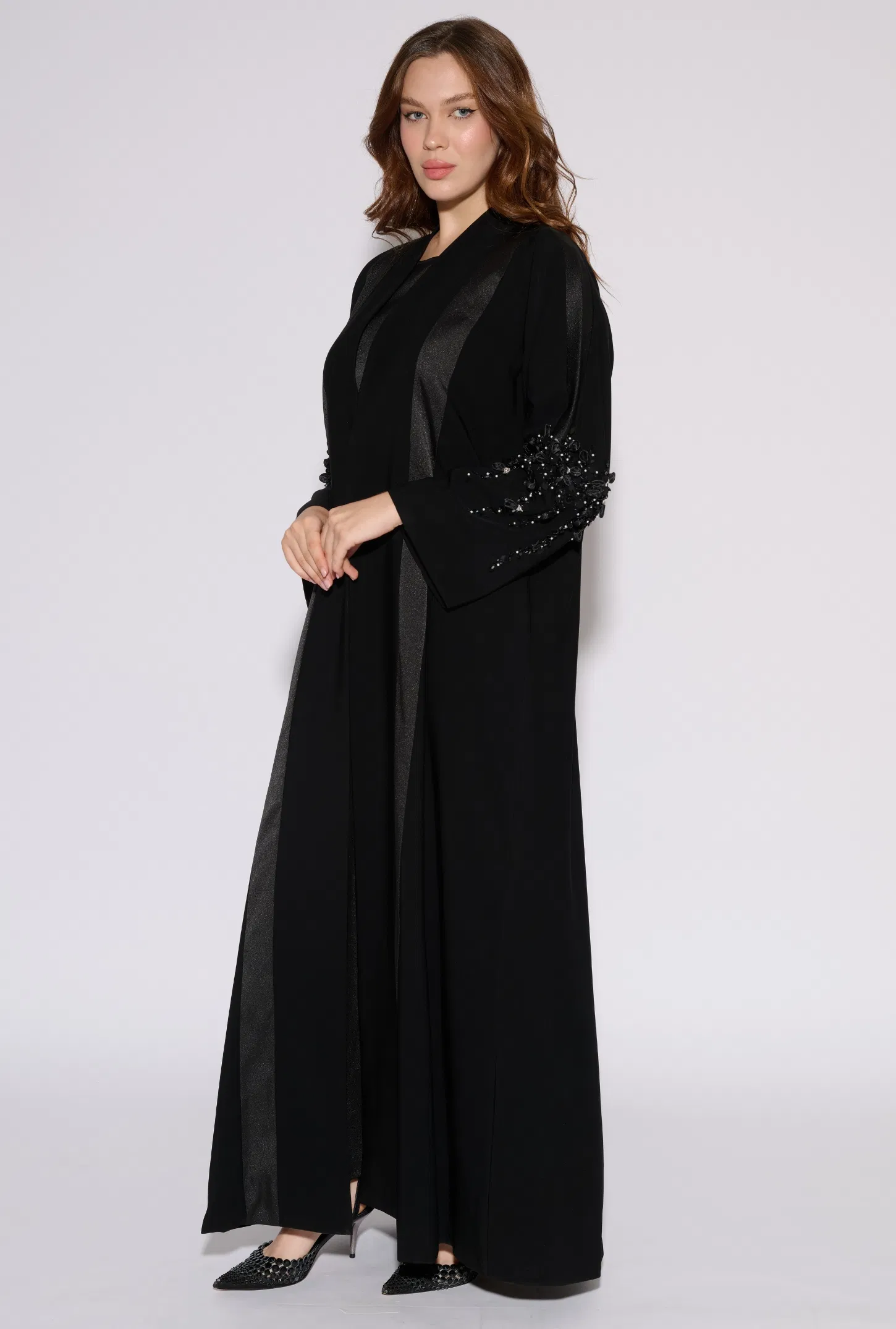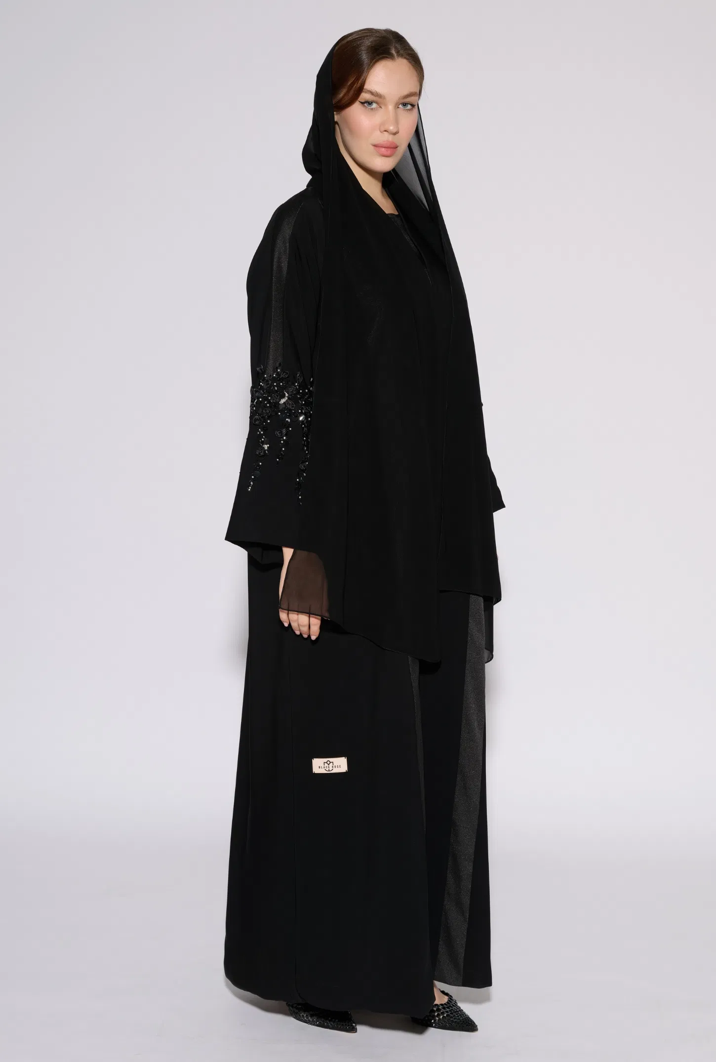 Abaya with luxurious handwork on the front side or sleeves, with inner dress and Headscarf.